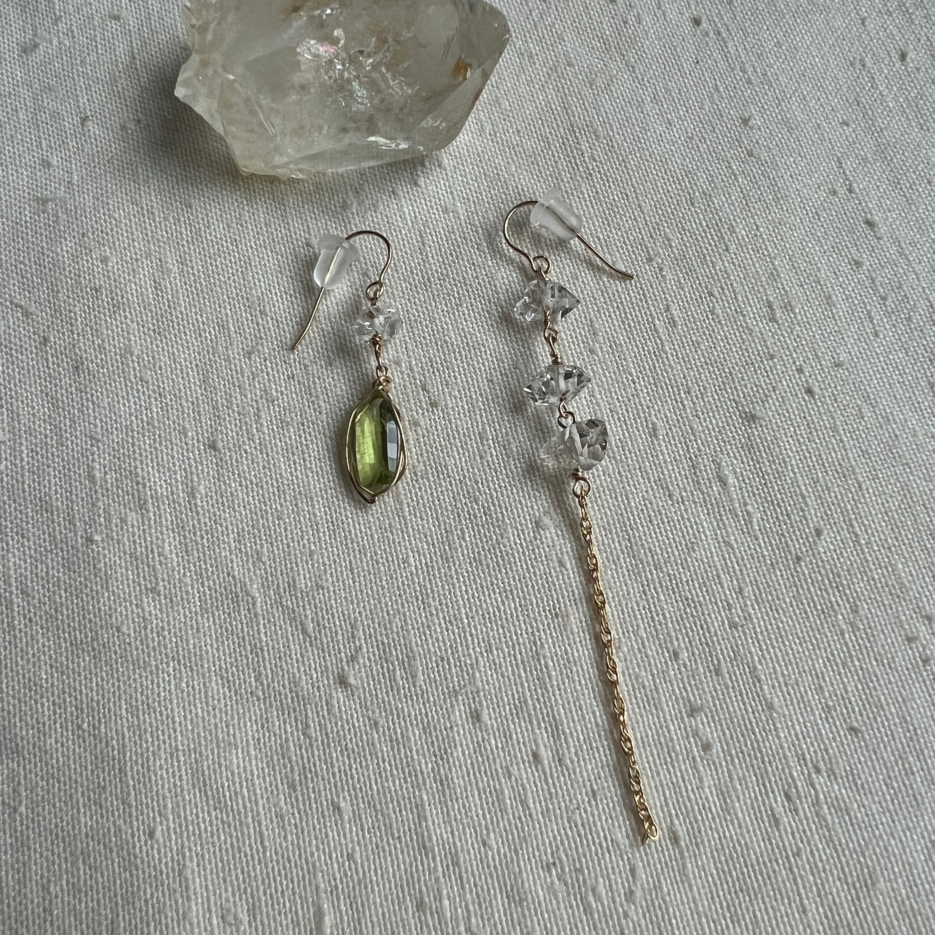 ペリドットと水晶のピアス